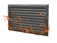 Le fonctionnement d’une grille de transfert coupe-feu est basé sur les propriétés de dilatation des matériaux intumescents qui se trouvent au coeur des lamelles. Lorsque la température ambiante atteint 100°C, le matériau se dilate pour atteindre plusieurs fois son épaisseur originale. Les lamelles se fondent alors ensemble pour constituer une masse non-combustible qui procure une résistance au feu similaire à celle de la construction traversée. Elle empêche ainsi le passage des flammes, de la chaleur et des gaz.