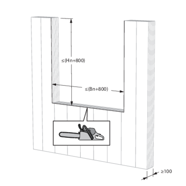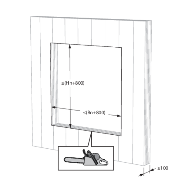 Bei einer Leichtbauwand sind horizontalen und vertikalen Profilen um die Einbauöffnung herum vorzusehen. Ausnahme: Für die Feuerwiderstandsdauer EI60S und wenn Abdichtung mit Weichschott vom Typ Promastop oder Hilti ist es aus brandschutztechnischer Sicht nicht erforderlich, Profile um die Einbauöffnung herum vorzusehen.
