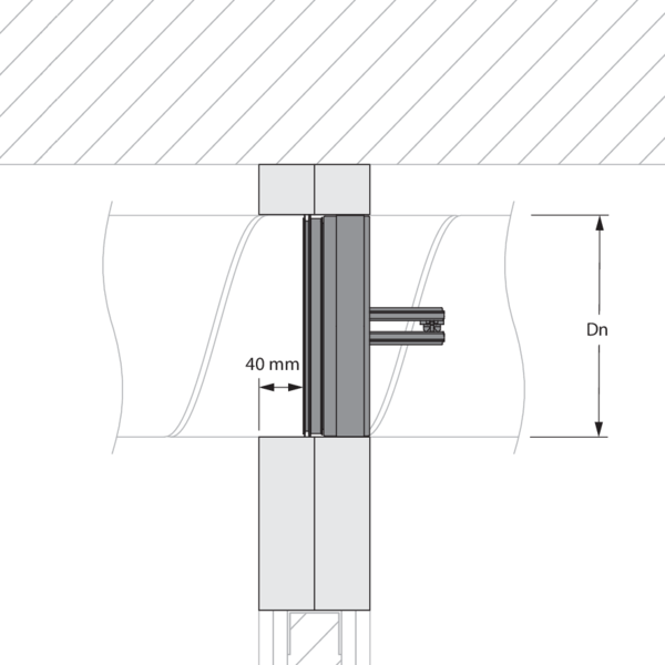 This range of Rf-t fire dampers has been successfully tested and in several installation methods can be installed in a vertical supporting construction, at a distance below the minimum set by the standard - see below.