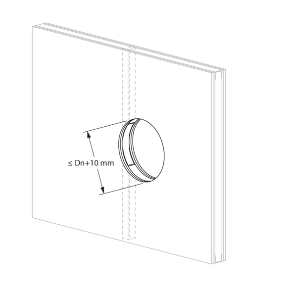 - Aerated concrete ≥ 100 mm | EI 60 (ve i o) S - (300 Pa) | Fire resistant acrylic sealant | Type of installation: remote from the wall, 0-360° | Ø 100-630 mm