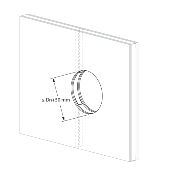- Aerated concrete ≥ 100 mm | EI 60 (ho i o) S - (300 Pa) | Fire resistant acrylic sealant | Type of installation: remote from the wall, 0-360° | Ø 100-630 mm