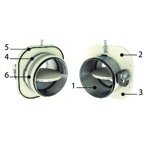 Circular fire damper for surface mounting, with a minimum fire resistance of 60 minutes.