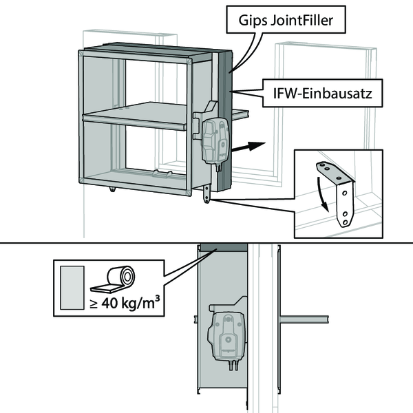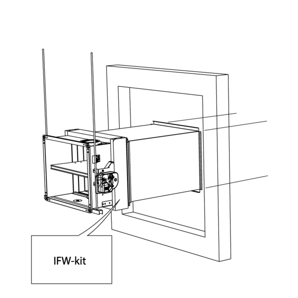 - Metal studs gypsum plasterboard Type A (EN 520) ≥ 100 mm | EI 60 (ve i o) S - (500 Pa) | Inbouwblok IFW | Type of installation: built-in 0/90/180/270° | 200x100 mm ≤ CU-LT ≤ 800x600 mm