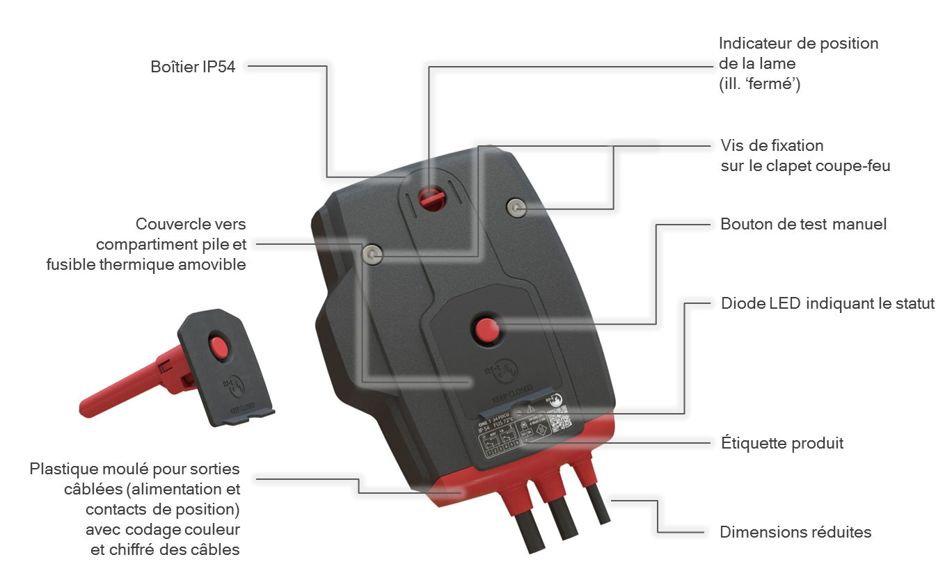 - son fusible thermique (mécanique) intégré garantit un niveau de sécurité incendie élevé, également pendant la phase de construction.