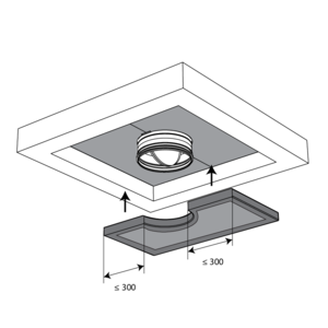 Le clapet peut mais ne doit pas être centré dans la réservation (de dimensions maximales clapet + 600 mm). Une distance maximale de 400 mm doit être respectée par rapport au bord de la réservation.