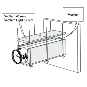 La protection en staff GEOFLAM F / GEOFLAM Light s’arrête à 20 mm du mur. L’espace libre entre le mur et la protection en staff est comblé par bourrage de polochons (mélange de plâtre et de filasse).