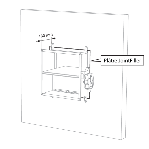 Le corps du clapet est également ainsi protégé sur une longueur de 150 mm. Une réservation est opérée dans le panneau de laine de roche à hauteur du mécanisme afin de garantir l’accès à celui-ci.