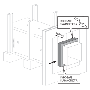*Pour un classement jusqu'à EI 60 S : panneaux de laine de roche pré-enduit de type PYRO-SAFE® FLAMMOTECT-A peuvent être remplacés par un type similaire de panneau de laine de roche présentant au moins la même classe de réaction au feu, la même densité et la même épaisseur (testé selon EN 1366-3).