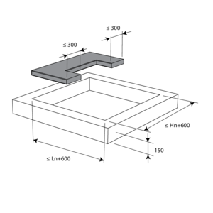 Le clapet peut mais ne doit pas être centré dans la réservation (de dimensions maximales clapet + 600 mm). Une distance maximale de 400 mm doit être respectée par rapport au bord de la réservation.