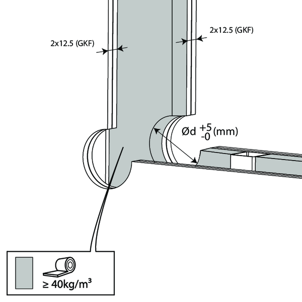 - L'installation est autorisée dans des parois qui ont une épaisseur et/ou densité similaire ou supérieure à celle du test, comme décrit dans la norme EN 1366-3.
