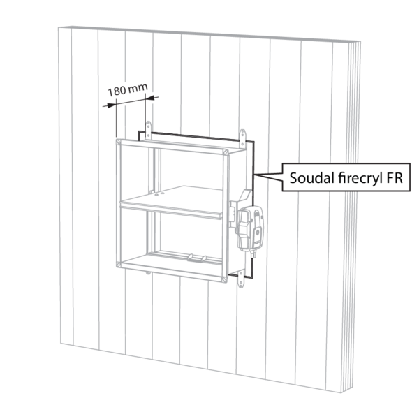 Le corps du clapet est également ainsi protégé sur une longueur de 150 mm. Une réservation est opérée dans le panneau de laine de roche à hauteur du mécanisme afin de garantir l’accès à celui-ci.