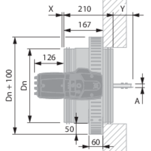Dépassement lame: X = du côté du mécanisme, Y = du côté mur