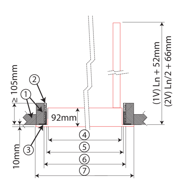 - 6. Cotes d'encastrement avec précadre (Ln+20) x (Hn+20)mm