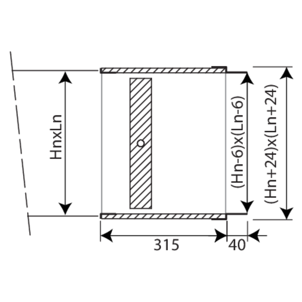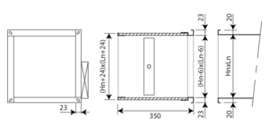 PG20 - Raccordement sur gaines pourvues de brides de 20mm, trous elliptiques Ø 6,5 x 16 mm. Aussi possible côté conduit au lieu du raccordement PS (à mentionner à la commande).