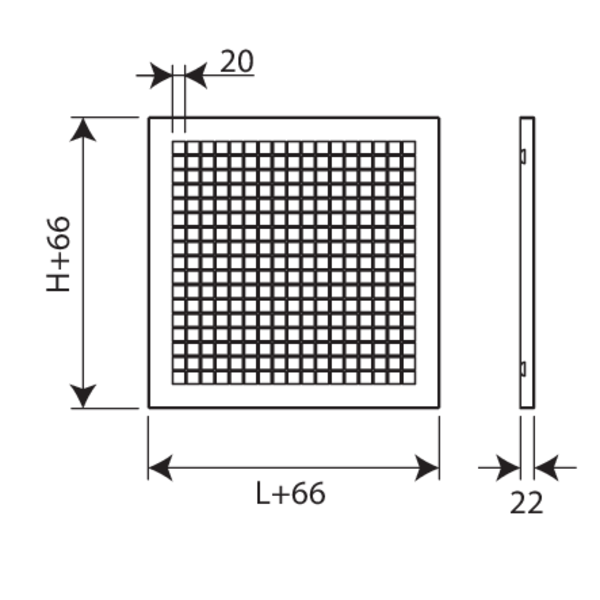 PPT (+PG3V) - Treillis, idéal comme grille de protection sur un élément terminal d'un réseau de gaines. Cadre allongé PG3V inclus dès que la lame dépasse le tunnel. Possible côté du mécanisme au lieu du raccordement PG30 (à mentionner à la commande).