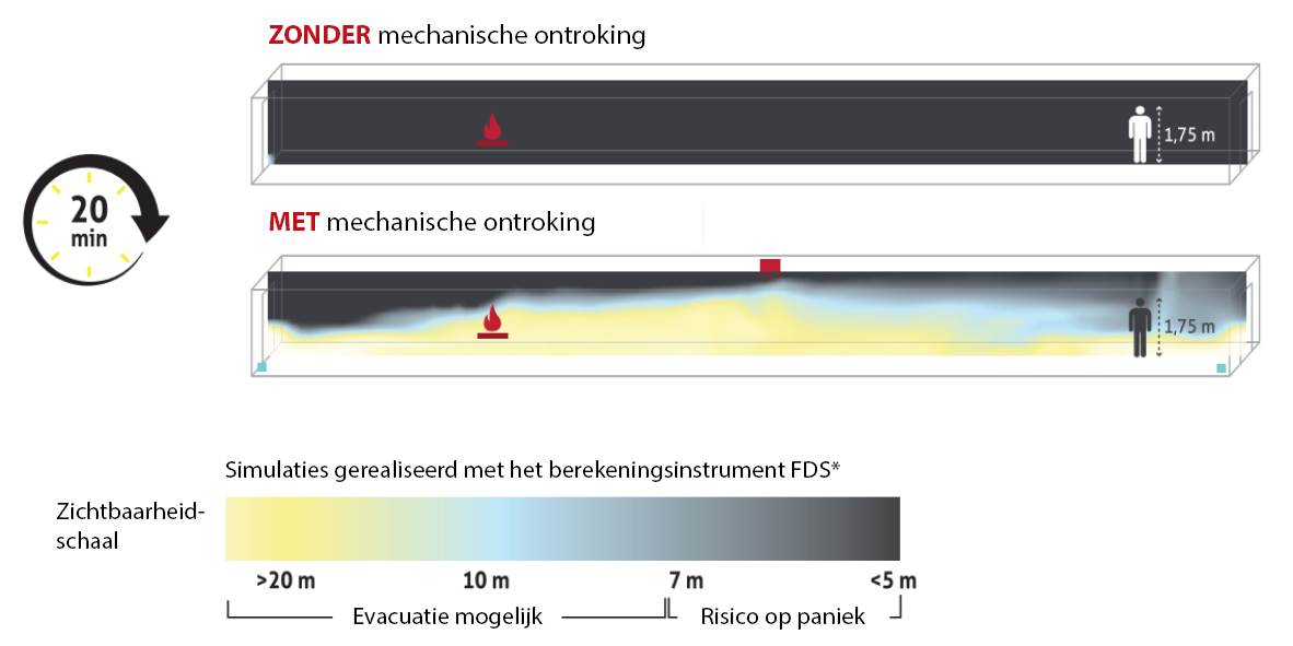 Handelen vóór de komst van de hulpdiensten is dus cruciaal. Dit is wat mechanische rookafzuiging mogelijk maakt.