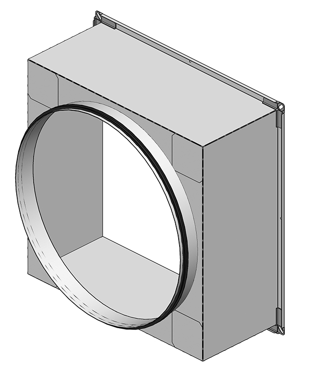 Ronde aansluiting voor rechthoekige kleppen (met rubber dichtingsring)