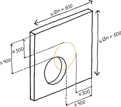 Mag ik de brandklep asymmetrisch plaatsen in een sparing afgedicht met gecoate steenwolplaten? Enkel indien zo getest. De brandklep moet niet centraal in de opening geplaatst worden (de maximale afstand tussen brandklep en rand is 400 mm).