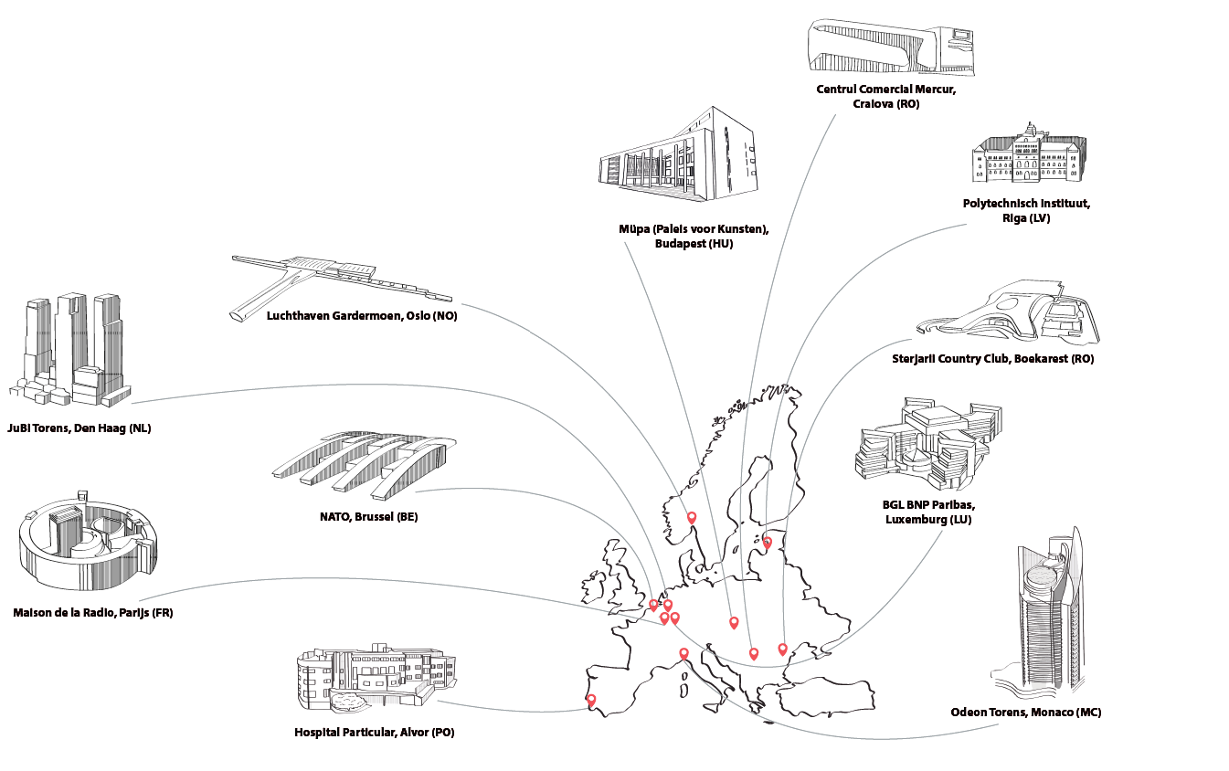 Klantenreferenties Onze compartimenterings- en rookbeheersingsproducten garanderen de veiligheid van commerciële en institutionele gebouwen in heel Europa: kantoorgebouwen, ziekenhuizen, musea, overheidsgebouwen en winkelcentra. Nieuw Provinciehuis - Antwerpen AXA 2017 - Brussel Tour Part Dieu - Lyon SETIF Park Mall - Sétif, Algerije