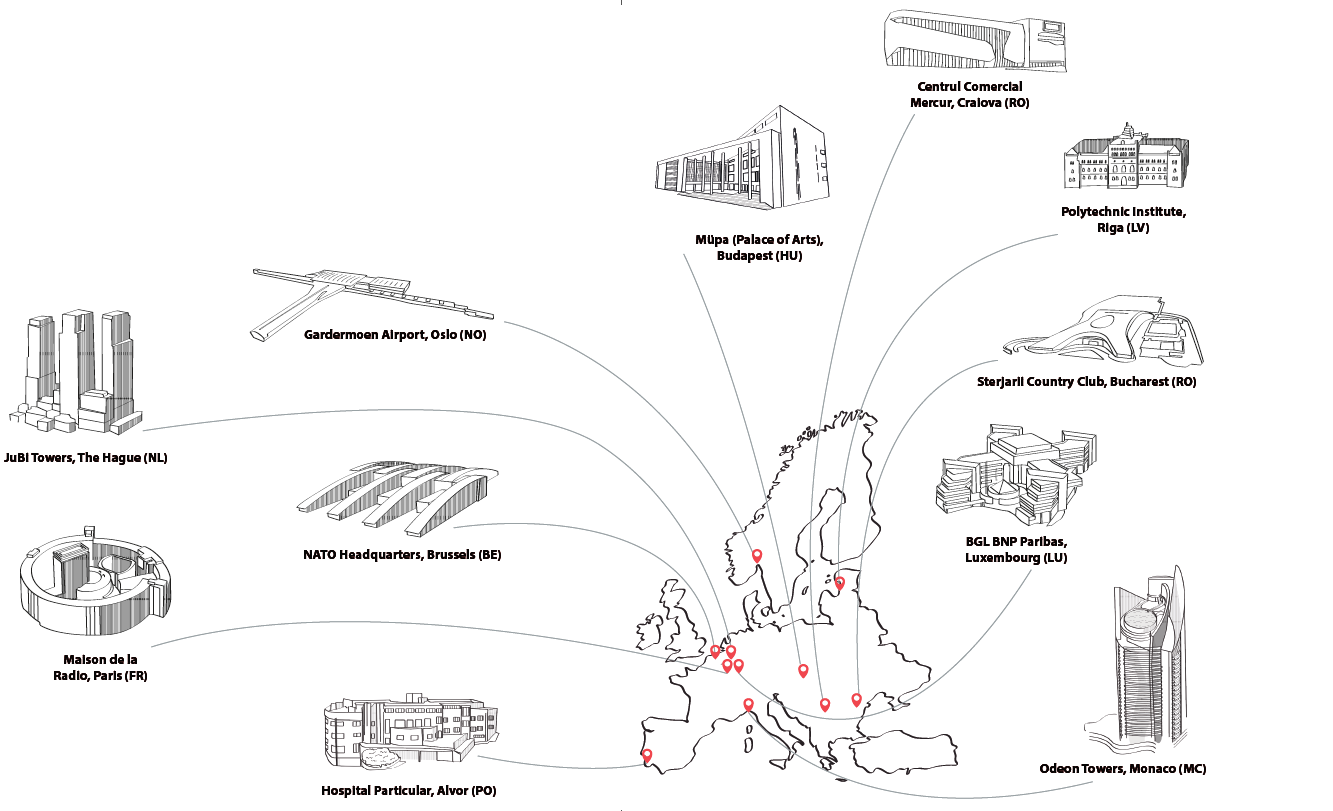 Våra brandcells- och rökevakueringsprodukter garanterar säkerheten för kommersiella och institutionella byggnader över hela Europa:kontorsbyggnader, sjukhus, museer, offentliga byggnader och köpcentrum.